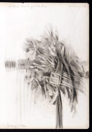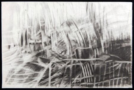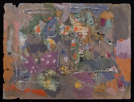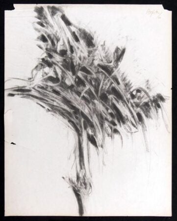 Figures 4 and 5 share a common presence: dreamlike abstracted shapes cohabitating, each with its own purpose reminding the viewer that theirs is a dynamic. Gorky’s shapes appear to move and communicate with one another as if on a softly lit stage. Stapleton’s, in contrast, are busy constructing their own vertical environ in darker, contrasting tones of gray. Stapleton’s growing spontaneity in his approach to drawing was mirrored in his passion for jazz, a self-reflection he described in his 1959 Fulbright scholarship application.¹