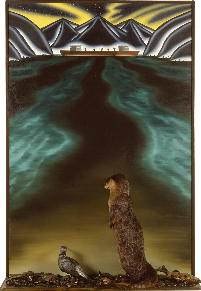 Roger Brown. XXX Exxon. 1989. Oil on canvas, mixed media. Image and data provided by the Roger Brown Study Collection, School of the Art Institute of Chicago.