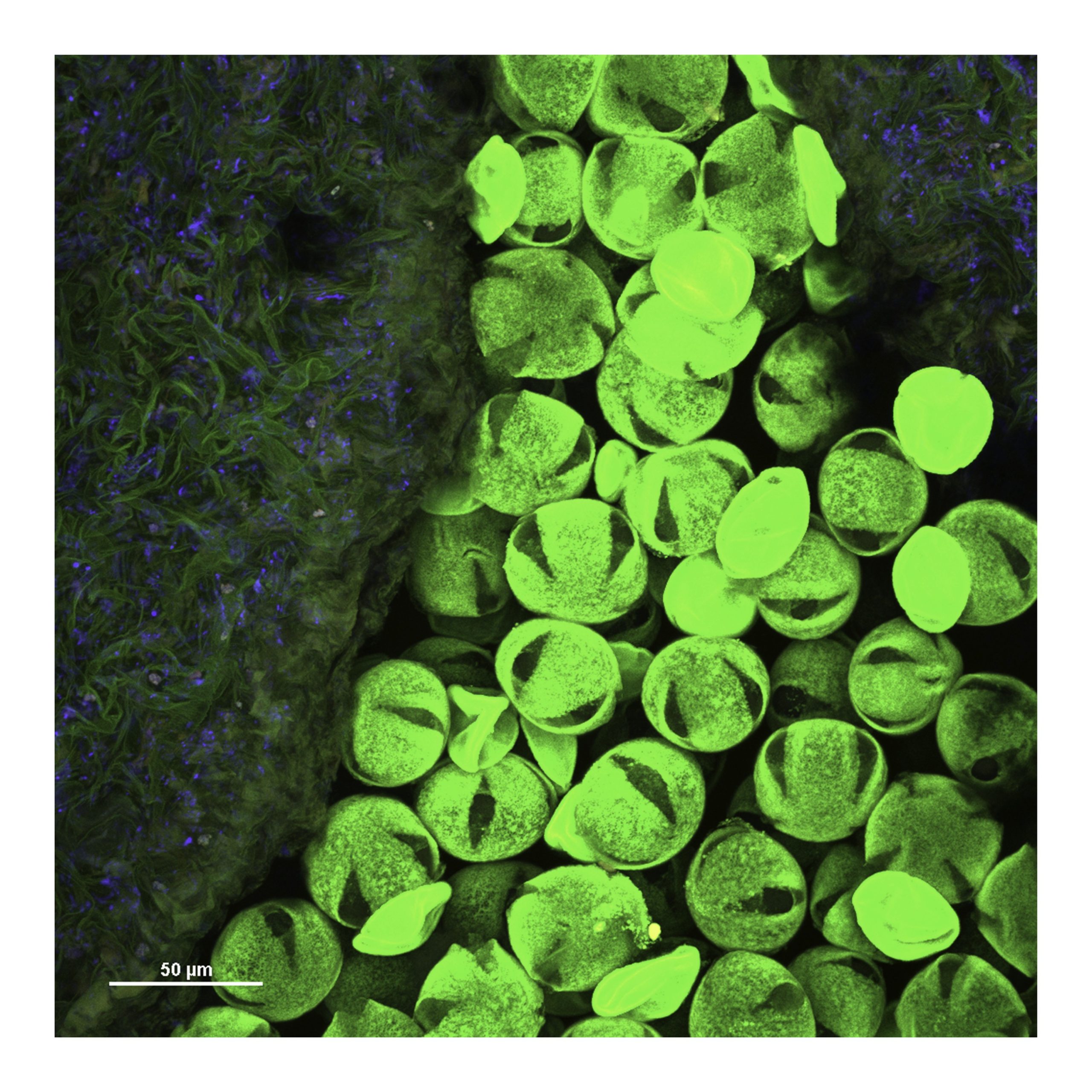 - Microcosms: Sacred Plants of the Americas (70 images) – Confocal microscopy, also known as confocal laser scanning microscopy, is a specialized optical imaging technique that provides contact-free, non-destructive measurements of three-dimensional shapes. In this case, plants considered sacred by indigenous groups of the Americas were scanned at St. Lawrence University’s microscopy and imaging center. The procedure gathers information from a narrow depth of field, while simultaneously eliminating out-of-focus glare, as well as permitting the creation of optical sections through biological samples. Images are built over time by gathering photons emitted from fluorescent chemical compounds naturally contained within the plants themselves, creating a vivid and precise colorimetric display.