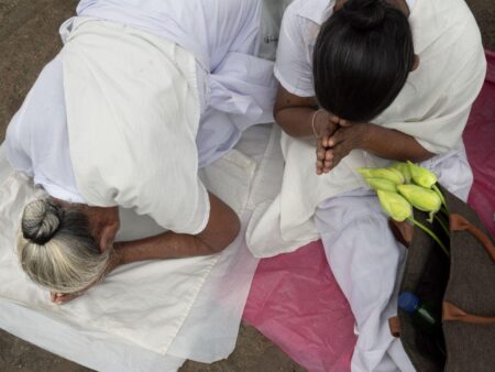 Alex Majoli transports us to the Ruwanwelisaya Stupa in Sri Lanka, one of the most venerated places of worship in the country, taking an inside look at the role the sacred lotus flower, symbol of mental purity and spiritual perfection, plays in Buddhism. Majoli captures how “vendors artfully arrange the vibrant flowers, offering them to pilgrims. Lotus flowers are used by believers as a symbolic offerings, giving rise to contemplative gratitude and inspiration.”¹
